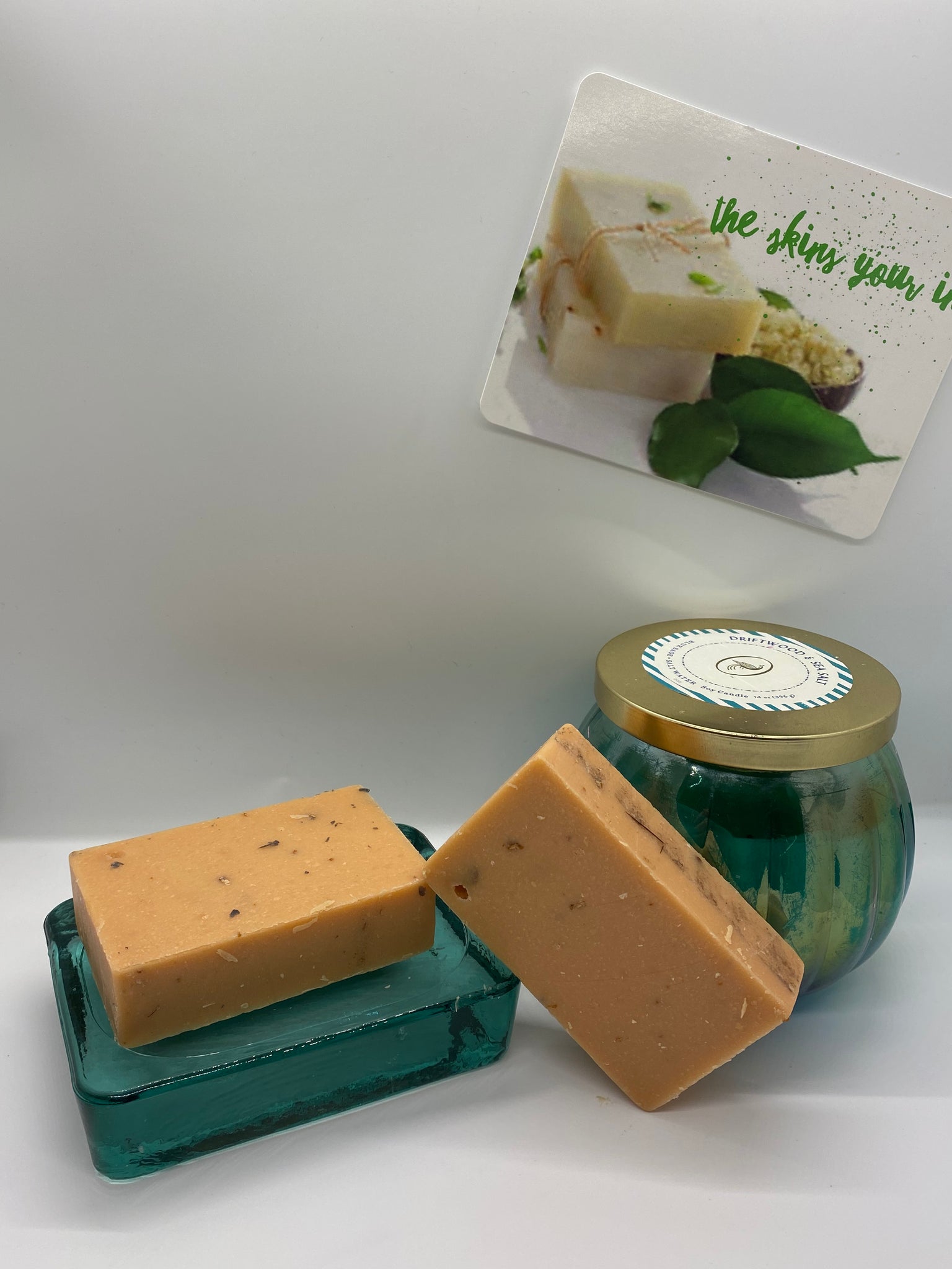 Reveal brighter, healthier skin with our Turmeric Orange Soap—a powerhouse blend known to lighten stretch marks, even skin tone, and reduce scars, acne, and chronic breakouts.
